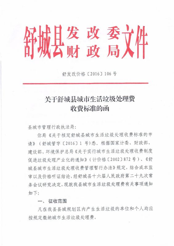 城市生活垃圾處理費(fèi)收費(fèi)標(biāo)準(zhǔn)